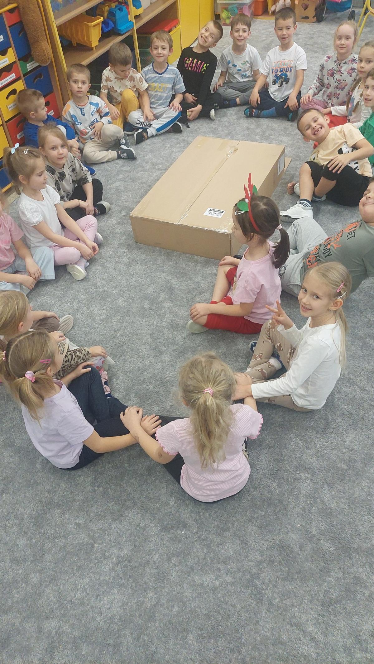 Rozpakowywanie paczki sprawiło przedszkolakom z gr 4 mnóstwo radości — uśmiechy były od ucha do ucha, a ciekawość sięgała zenitu!