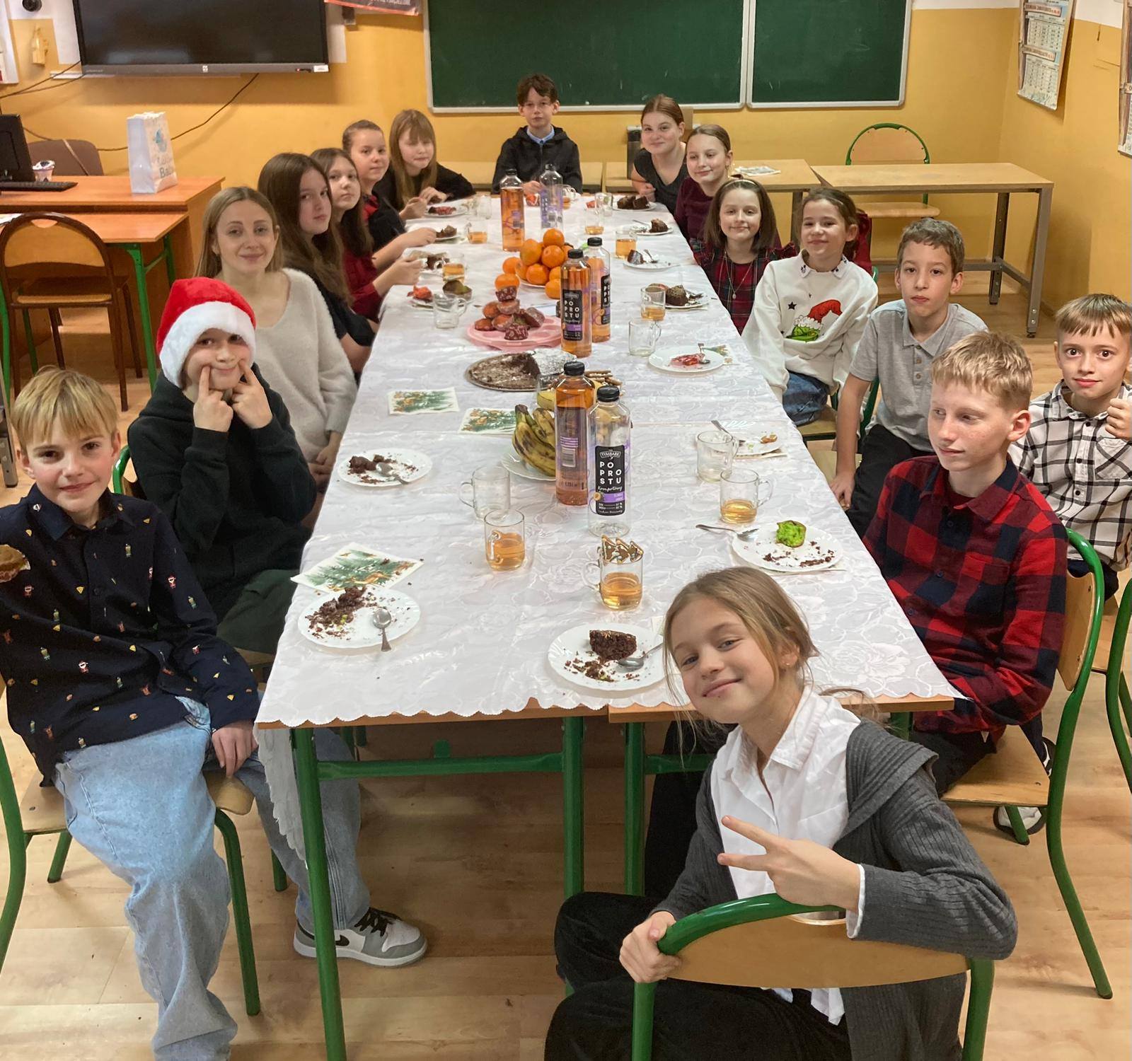 Za nami radosny czas mikołajek i wigilii klasowej. Piątoklasiści na początku grudnia obdarowali się prezentami, a w czwartek poprzedzający przerwę świąteczną miło spędzili czas podczas wigilii klasowej. Była to doskonała okazja do rozmów, integracji grupy oraz wspólnego kolędowania.