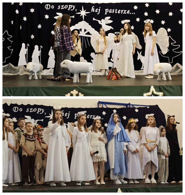 Święta Bożego Narodzenia to wyjątkowy czas w roku przepełniony ciepłem, radością i miłością, to także okazja do wspólnego przebywania ze sobą. W tym właśnie niezwykłym czasie 19 grudnia uczniowie naszej szkoły przedstawili Jasełka przeplatane pięknymi kolędami, które stały się nie tylko artystycznym wydarzeniem, ale także pięknym gestem wspólnoty, radości  i dzielenia się dobrem z uczestnikami spotkania. Inauguracji tego niezwykłego wydarzenia dokonała Pani Dyrektor Justyna Golema witając przybyłych gości, a wśród nich: Wiceburmistrza Głogowa Małopolskiego Pana Mirosława Osetka, Radnych Głogowa Małopolskiego: Pana Stanisława Grzywacza i Pana Pawła Ząbczyka, Sołtysa Bud Głogowskich Pana Bogusława Kowalskiego z rodziną, Przewodniczącą Koła Gospodyń Wiejskich w Budach Głogowskich Panią Helenę Grzywacz. W pięknej scenografii, którą przygotowała Pani: Elżbieta Kwolek, Pani Agnieszka Zając i Pani Patrycja Jasińska w specjalnie przygotowanych na tę okazję kostiumach, uczniowie po raz kolejny opowiedzieli historię narodzin Jezusa. Na scenie obowiązkowo pojawiły się osoby, które znamy ze scen biblijnych: Maryja, Józef, Herod, Trzej Królowie, Aniołowie, pasterze i inne postacie towarzyszące narodzinom Jezusa. Reżyserem i scenarzystą spektaklu była Pani Barbara Węglarz, przy nieocenionej pomocy Pani Agnieszki Saramy. Udało się połączyć talent, zapał i entuzjazm tych najmłodszych i najstarszych, co jest cennym doświadczeniem zwłaszcza dla dzieci. Niezwykły nastrój udzielił się wszystkim zebranym, dlatego bez tremy kolejno na scenie prezentowali się uczniowie poszczególnych klas. Wspólne śpiewanie stworzyło ciepłą, świąteczną atmosferę. Jasełka to nie tylko piękna okazja do prezentacji talentów aktorskich, ale także moment, w którym cała społeczność szkolna łączy się w radosnym świętowaniu. Oglądanie tego występu i kolędowanie stało się dla nas wszystkich ważnym wydarzeniem, pełnym refleksji, wzruszeń i świątecznego ciepła. Dzięki koncercie kolęd i jasełkom kultywujemy tradycje, wzmacniamy więzi międzyludzkie i dzielimy się radością Bożego Narodzenia.