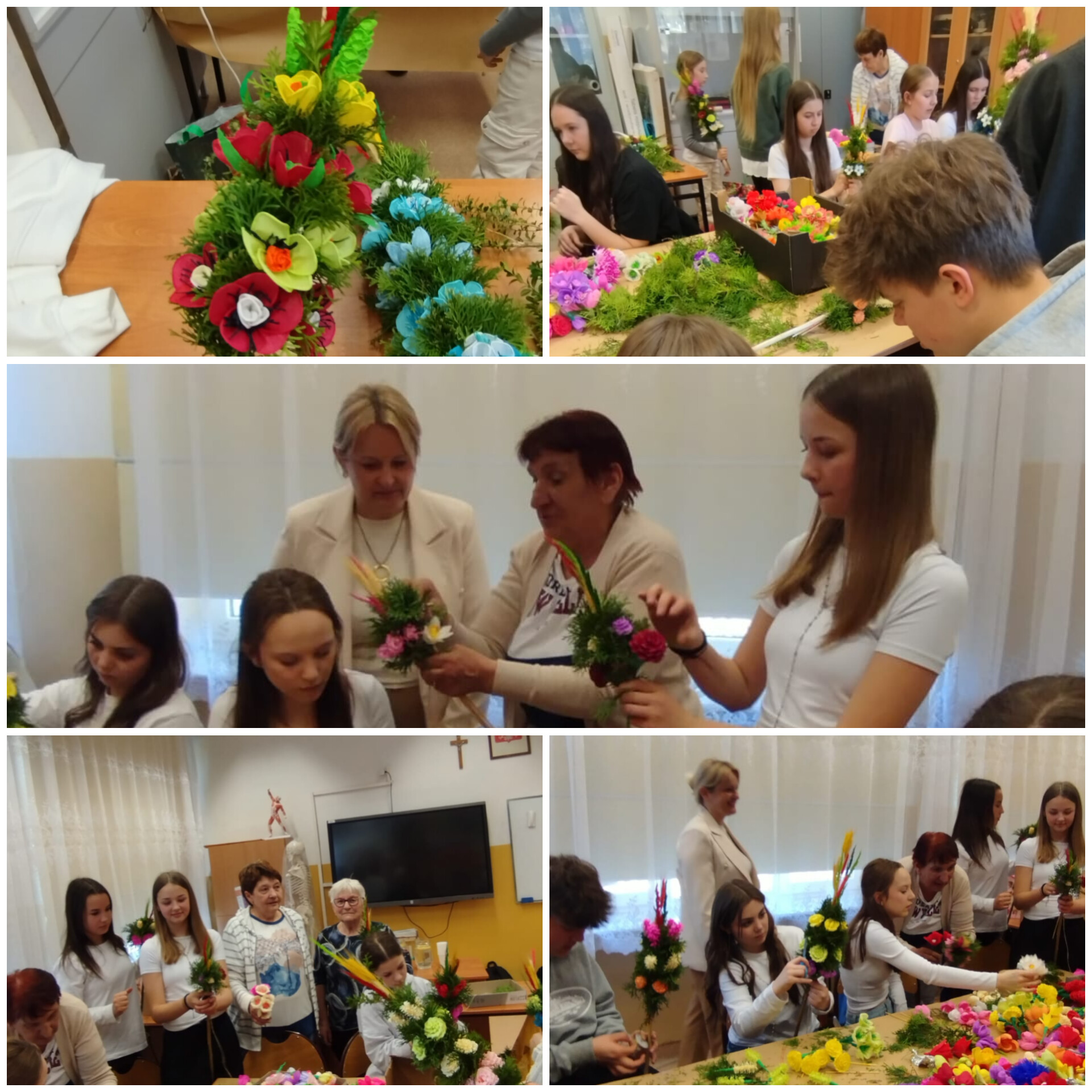 Głównym celem wydarzenia było wspólne tworzenie tradycyjnych palm wielkanocnych. Uczniowie przyszli na warsztaty w towarzystwie swoich babć, a nawet młodszego rodzeństwa, co stworzyło piękną okazję do wspólnego działania, rozmów, a także wymiany doświadczeń i wspomnień związanych ze świętami wielkanocnymi.